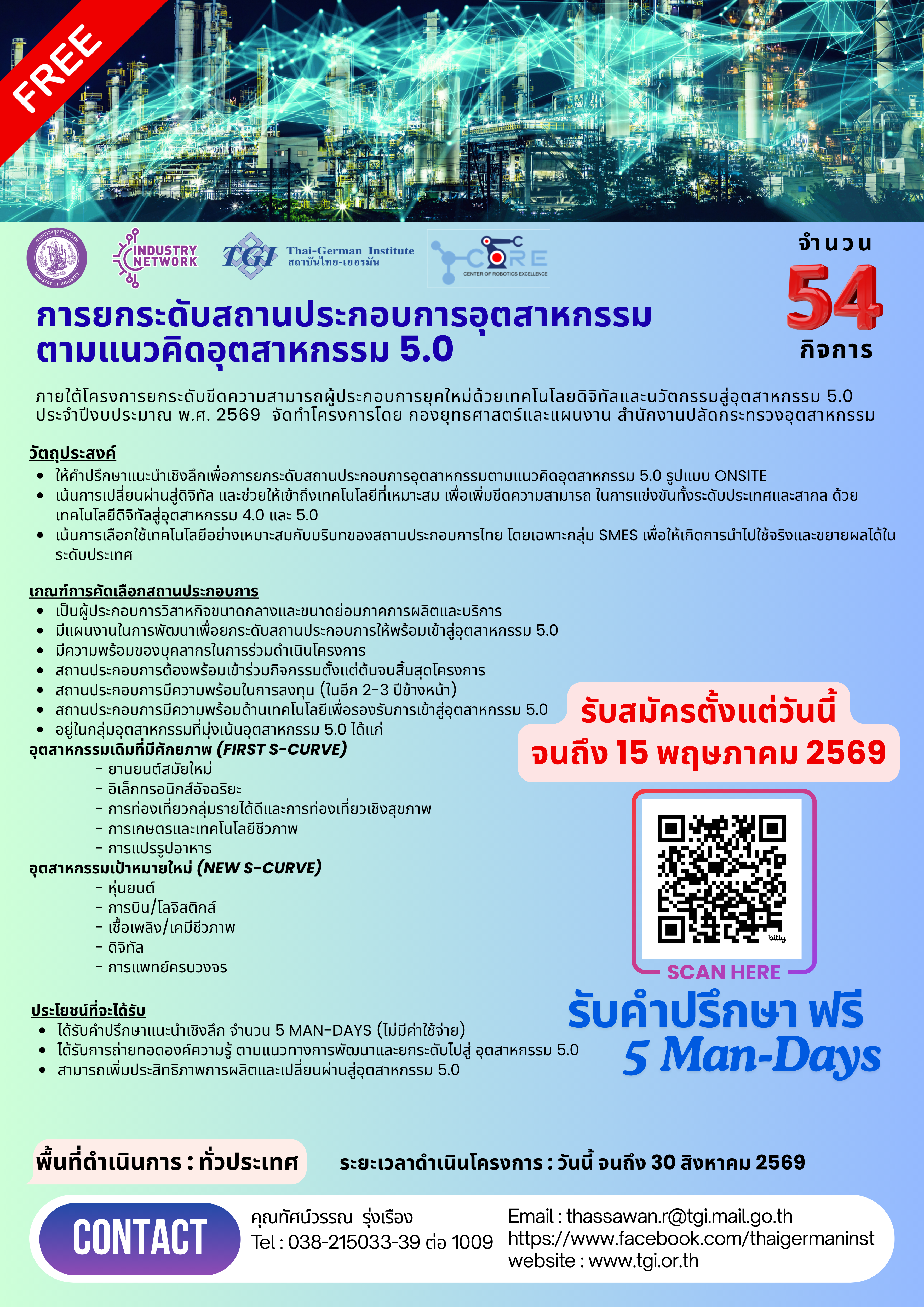 โอกาสทองของ SME ไทย! สำนักงานปลัดกระทรวงอุตสาหกรรม ร่วมกับ TGI ขอเชิญผู้ประกอบการเข้าร่วมโครงการ "ยกระดับขีดความสามารถผู้ประกอบการยุคใหม่ด้วยเทคโนโลยีดิจิทัลและนวัตกรรมสู่อุตสาหกรรม 5.0"