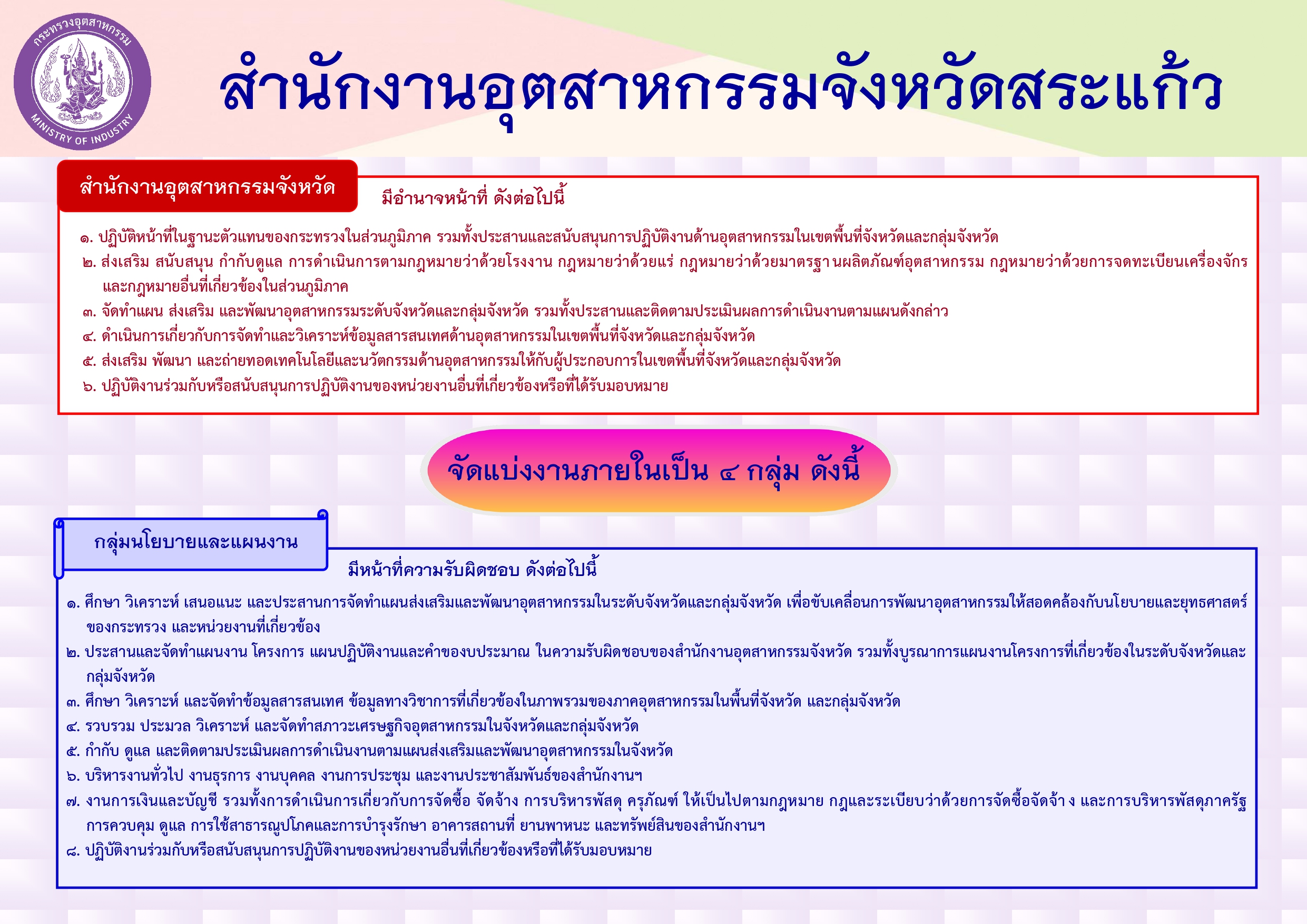 • หน่วยงานในสังกัดกระทรวงอุตสาหกรรม
